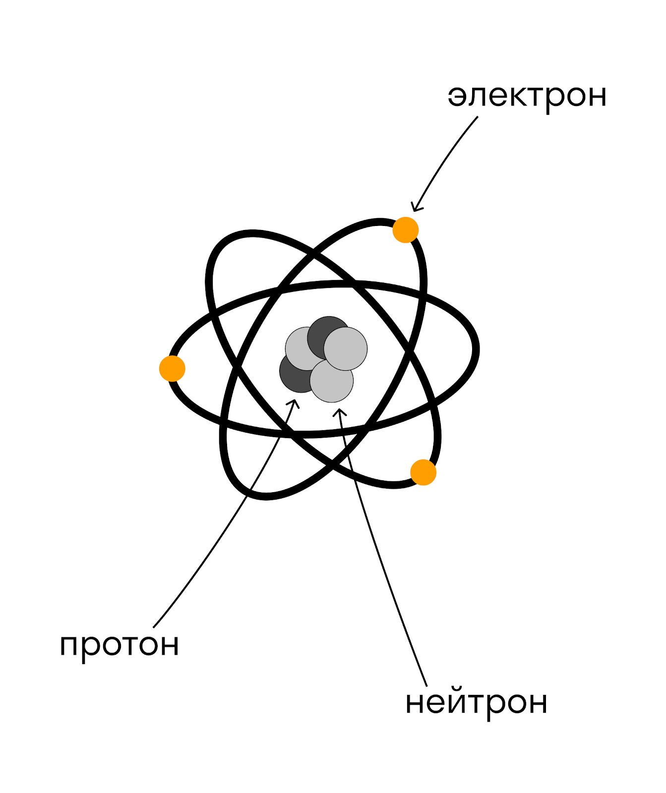 ÐÑоÑон â ÑÑо ÑаÑÑиÑа, коÑоÑÐ°Ñ Ð·Ð°ÑÑжена положиÑелÑно, нейÑÑон â нейÑÑалÑно, а ÑлекÑÑон â оÑÑиÑаÑелÑно. ÐлекÑÑÐ¾Ð½Ñ Ð²ÑаÑаÑÑÑÑ Ð¿Ð¾ оÑбиÑам, коÑоÑÑе во много Ñаз болÑÑе, Ñем ÑÐ°Ð·Ð¼ÐµÑ ÑлекÑÑона.