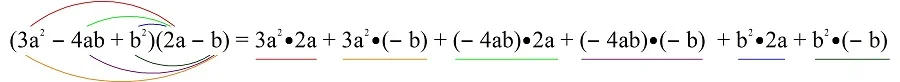 Пример. Найдем произведение выражений 3a2 – 4ab + b2и 2a– b.