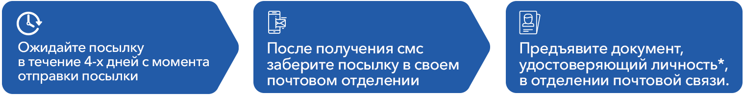 Когда ваше отправление будет доставлено в отделение почты, вам будет отправлено уведомление по SMS или электронной почте, в котором будет указан адрес отделения почты и время, когда вы сможете получить свою посылку.