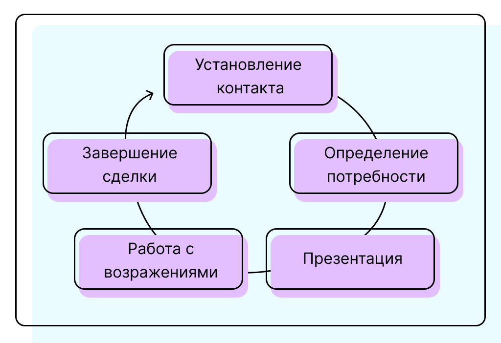 Классическая схема продаж состоит из пяти этапов, но часто добавляют еще один — шестой.