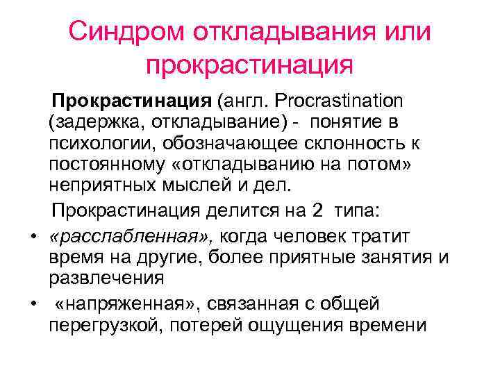 Прокрастинация становится зависимостью. Она, словно вредная привычка, от которой все сложнее отказаться, прочно въедается в жизнь человека. А на самых запущенных стадиях от нее практически невозможно избавиться самостоятельно. Именно поэтому данную проблему всерьез изучают психологи, психотерапевты и психоаналитики по всему миру, пытаясь найти ее решение.