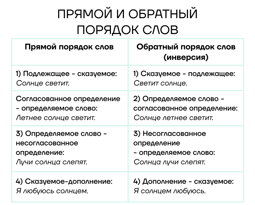 Прямой порядок слов в предложении нарушается инверсией. Чем же отличается прямой и обратный порядок слов?