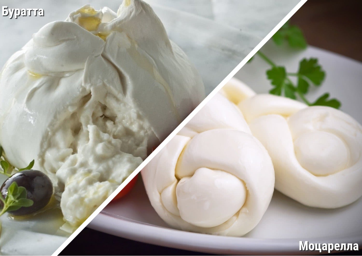 - Слабой выдержки. Буррата и Страчателла (о них ниже)