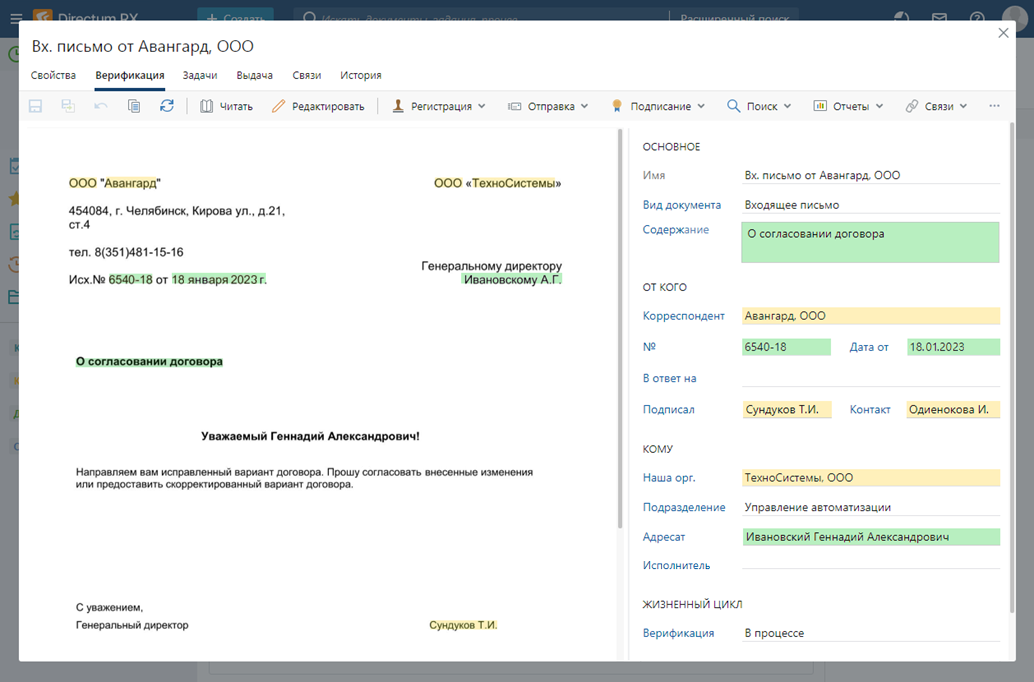Проверка данных, извлеченных искусственным интеллектом, в системе Directum RX