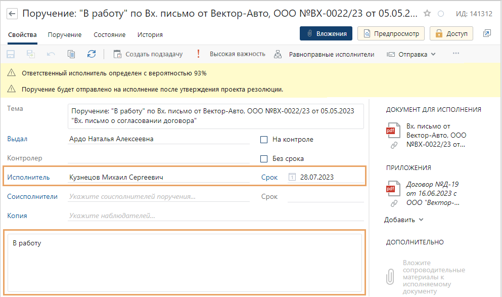 - формирование проекта поручения на основе протокола или приказа;