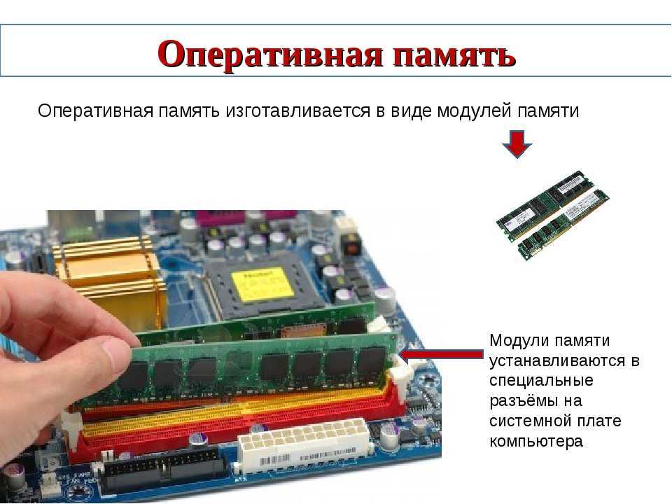 Оперативная память представляет собой набор микросхем, которые размещены на печатной плате – модуле памяти. Модули памяти обычно имеют форму небольших пластин, которые подключаются к материнской плате компьютера. На модуле памяти размещены микросхемы, которые состоят из транзисторов и конденсаторов.