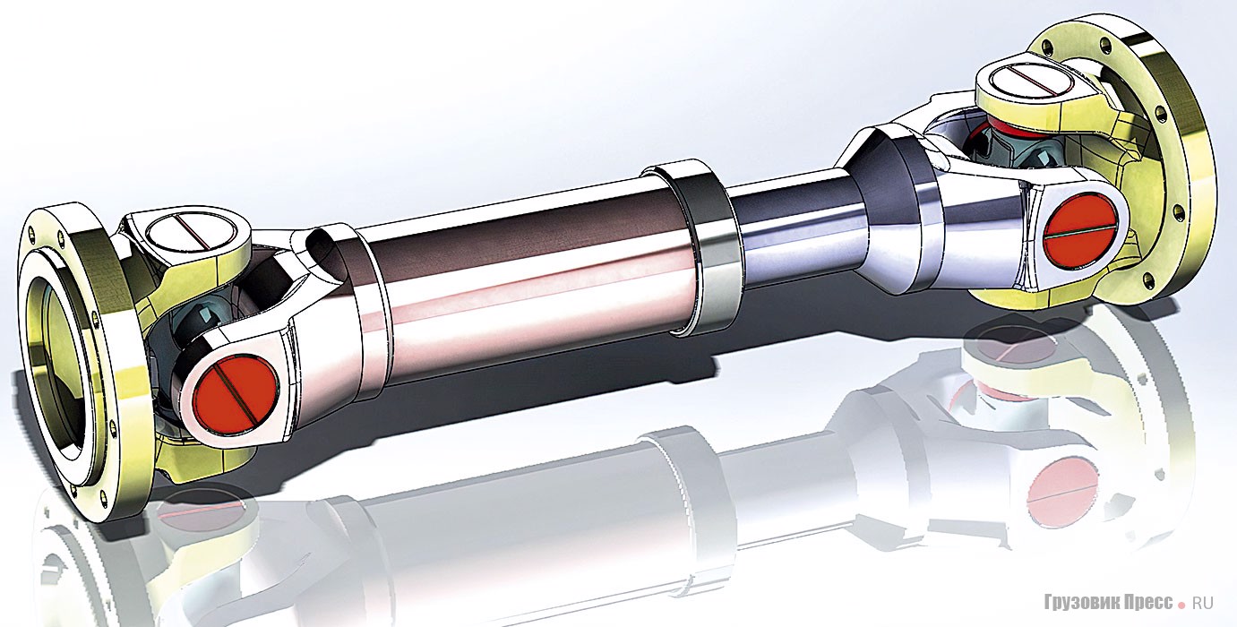 Прежде всего Курту Гиру и его команде предстояло тщательным образом проработать схему прохода карданного вала через узел сочленения. Для полной нагрузки ведущей оси требовалось отделить КП от двигателя и установить её в тягаче перед средней осью. После всех инженерных проработок принимается решение оставить двигатель с КП в заднем свесе, но для полной нагрузки ведущей оси в тягаче возле неё решили установить свинцовый балласт. Сама карданная передача из-за большого расстояния имела 4 вала, поддерживаемых промежуточными опорами. Для обеспечения равномерной передачи крутящего момента в месте прохода через узел сочленения карданная передача стала телескопической (раздвижной) – это минимизировало люфт свободного перемещения и устранило вибрацию. Рассчитали степень свободы обеих частей кузова: угол складывания должен составлять не более 45°, угол изгиба – 8°, угол закручивания – 3°. Поскольку карданная передача и узел сочленения обеспечивали максимальный угол поворота до 45°, было принято решение, что звуковая акустическая система будет предупреждать водителя уже при 40° поворота, это позволяло уменьшить риск разрыва узла сочленения при езде задним ходом и минимизировало износ механизмов.