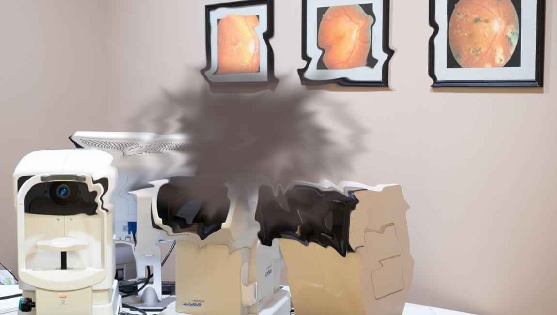 При проведении осмотра глазного дна (офтальмоскопии) врачи выявляют сглаженность фовеальной ямки (небольшого углубления, которое находится в центре жёлтого пятна).