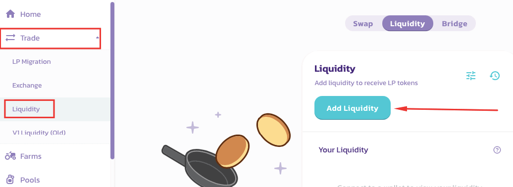 - Полученные токены LP отправьте в фарминг через раздел «Farms».