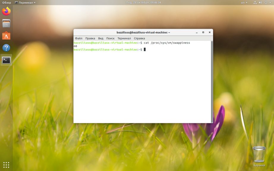 К примеру, в версии Ubuntu Linux для рабочего стола устанавливается параметр 60, а в серверных редакциях операционной системы — 1. Для того чтобы проверить, какой параметр используется в нашей ОС, вводим в терминал такую команду: