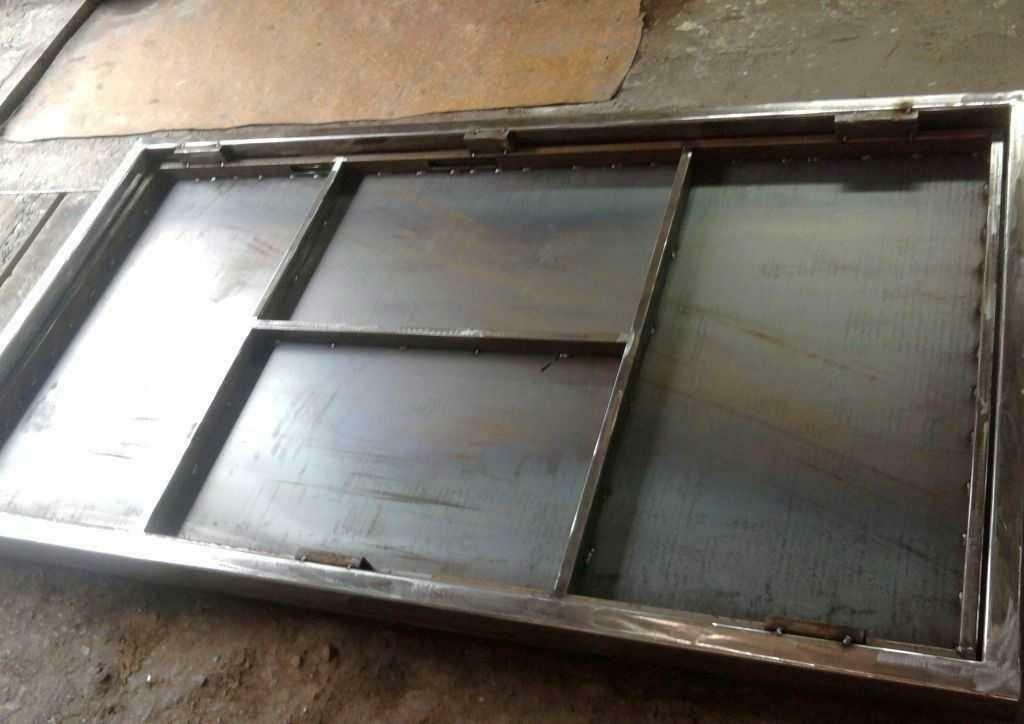 - Рёбра жёсткости, приваренные вдоль короткой стороны рамы, по центру вертикальных импостов.