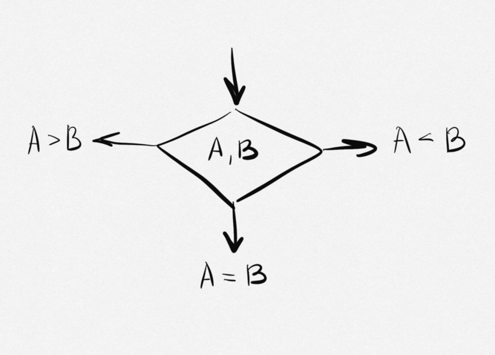- если они не равны, то определит, больше ли A, чем B.