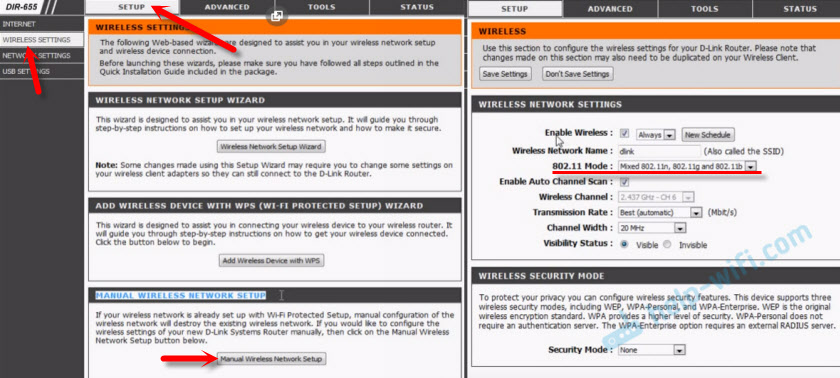 Настройка может называться иначе — Wireless Mode, Wireless Type, Wi-Fi Mode, Wi-Fi type. В общем нужно указать режим передачи данных. Но эффект в плане скорости, как я уже писал, будет при условии если оба устройства используют стандарт 802.11n.