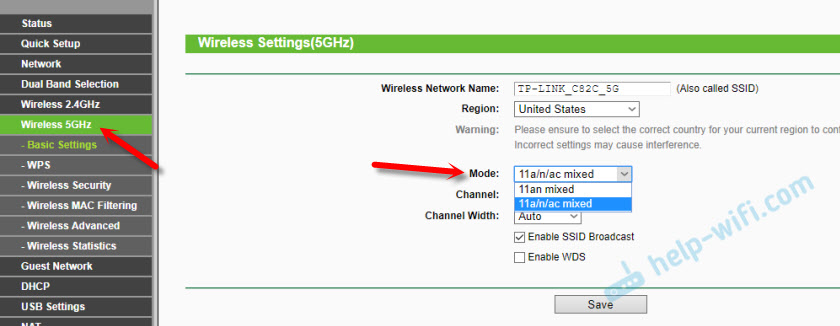Если у вас двухдиапазонный маршрутизатор TP-Link, то для смены режима работы диапазона 5 GHz перейдите в соответствующий раздел.