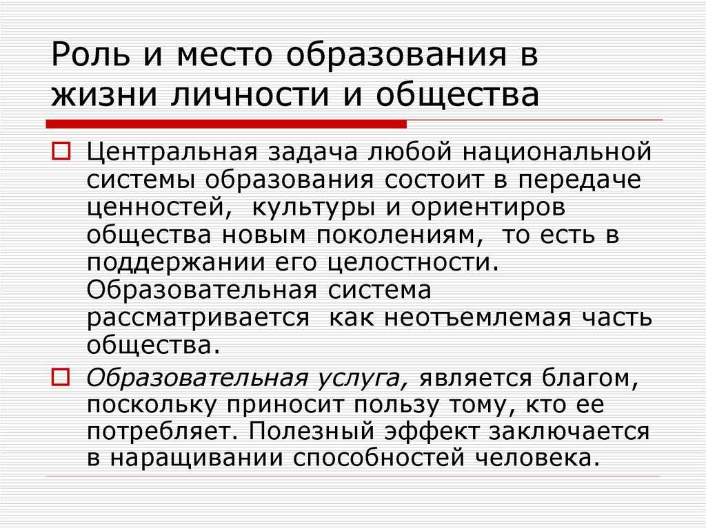 Проявление роли образования в жизни современного общества выражается в выполнении трёх функций: