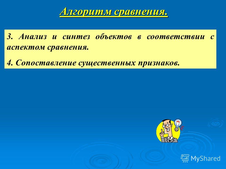 Алгоритм сравнения. 3. Анализ и синтез объектов в соответствии с аспектом сравнения. 4. Сопоставление существенных признаков.