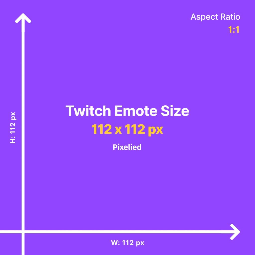 The ideal Twitch emote size is 28×28 pixels for web, 56×56 pixels for retina display, and 112×112 pixels for other large devices. Twitch emote template has three different sizes and you must upload all three sizes to ensure the right emote is rendered for the right device.