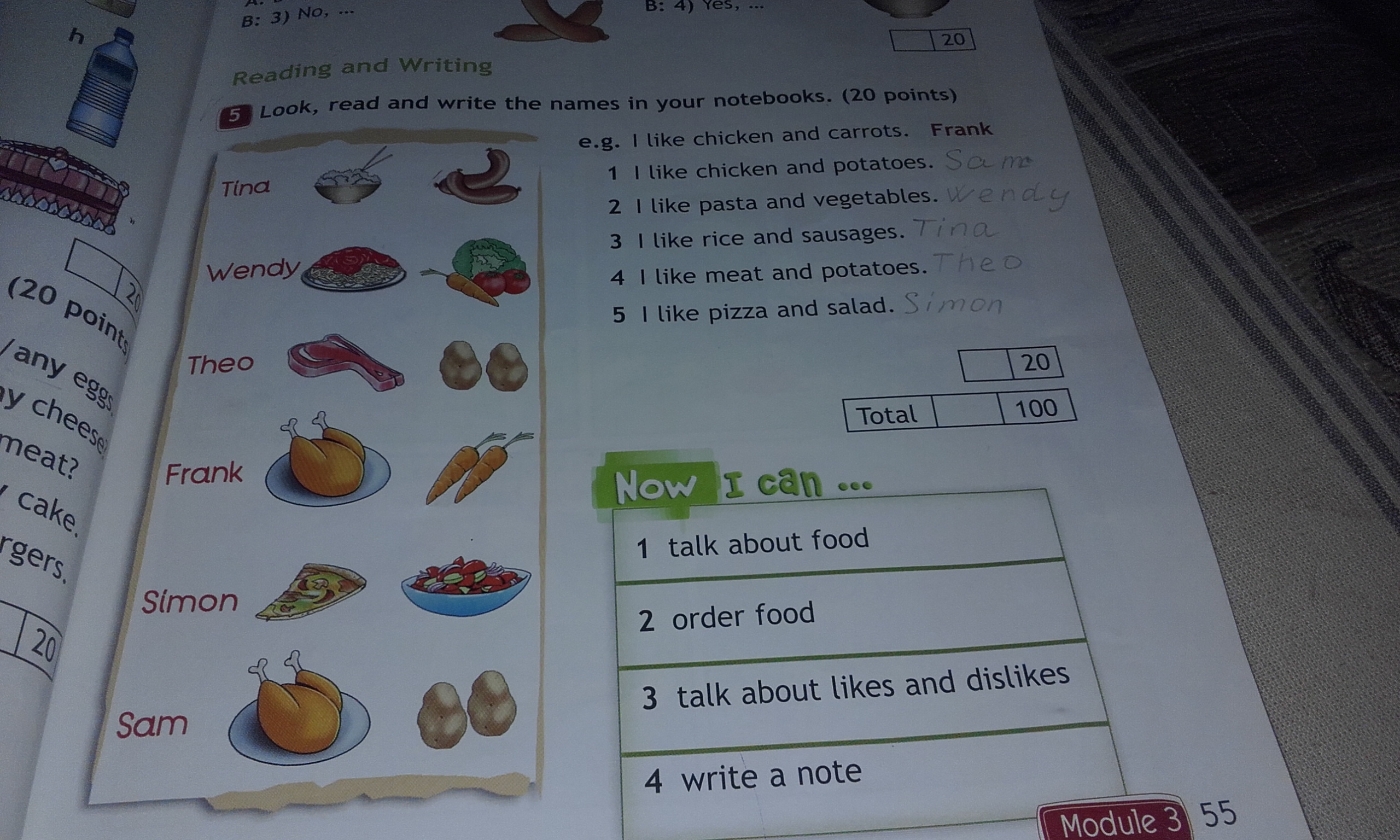 По завершении работы над упражнением учитель просит учащихся оценить свою работу, поставив 2 балла за каждый правильный ответ. Подсчитав общее количество баллов за упражнение, учащиеся записывают сумму в своих тетрадях.