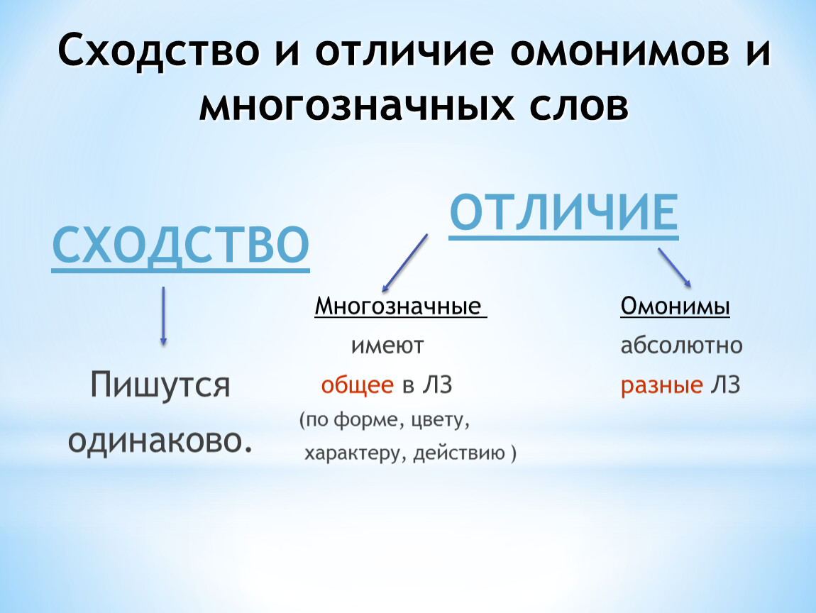 Не стоит путать многозначные слова и омонимы. Узнаем, чем отличаются многозначные слова от омонимов.. Разные значения многозначного слова помещаются в одной статье толкового словаря и нумеруются подряд цифрами