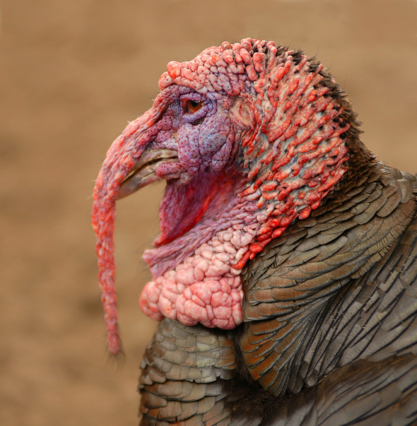 Индюк — это птица, которая при раздражении или испуге может вздуть свое тело, чтобы выглядеть более грозной и устрашающей