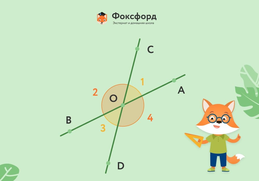 Обе стороны ∡1 также являются сторонами ∡3, а стороны ∡2 продолжают стороны ∡4. Такие углы называют вертикальными.