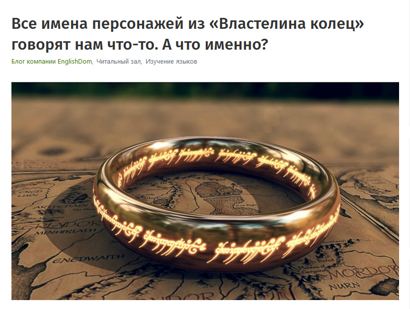 «Джон Толкин был выдающимся лингвистом. Помимо идеального владения английским, он в той или иной мере знал больше десятка других языков: французский, немецкий, итальянский, финский, норвежский, валлийский, датский, шведский, финский, гэльский и даже русский. Более того, он знал и древние языки: латынь, древненорвежский, готский, среднеанглийский и древнеанглийский».
