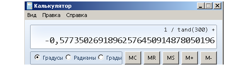 Если сравнить наш результат с калькулятором, то выяснится, что отклонение незначительное. Напоминаю: сначала вычисляем на калькуляторе tg 300°, запоминаем этот результат, затем один делим на число, которое запомнили — получаем ctg 300°.