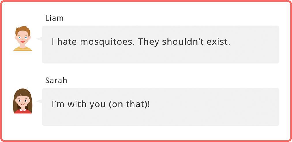 В этом диалоге Сара не просто слышит или понимает Лиана. Она не только разделяет чувство ненависти к комарам, но и полностью поддерживает его мнение, что они не должны существовать.