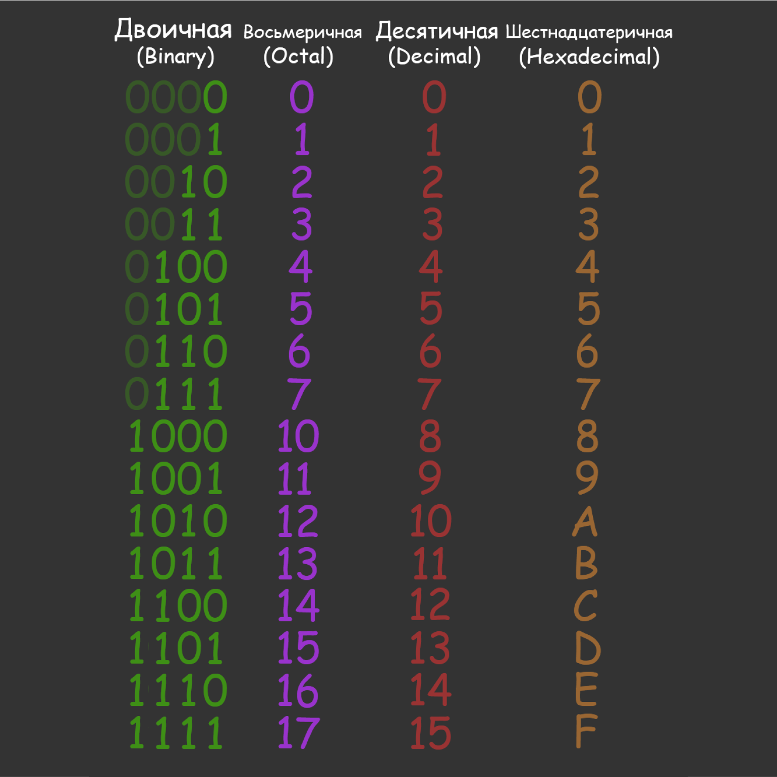 Важно. Если в тексте идет речь о различных системах, то чтобы уточнить, какая используется основа, ставится подстрочный знак: 12548, 011001112