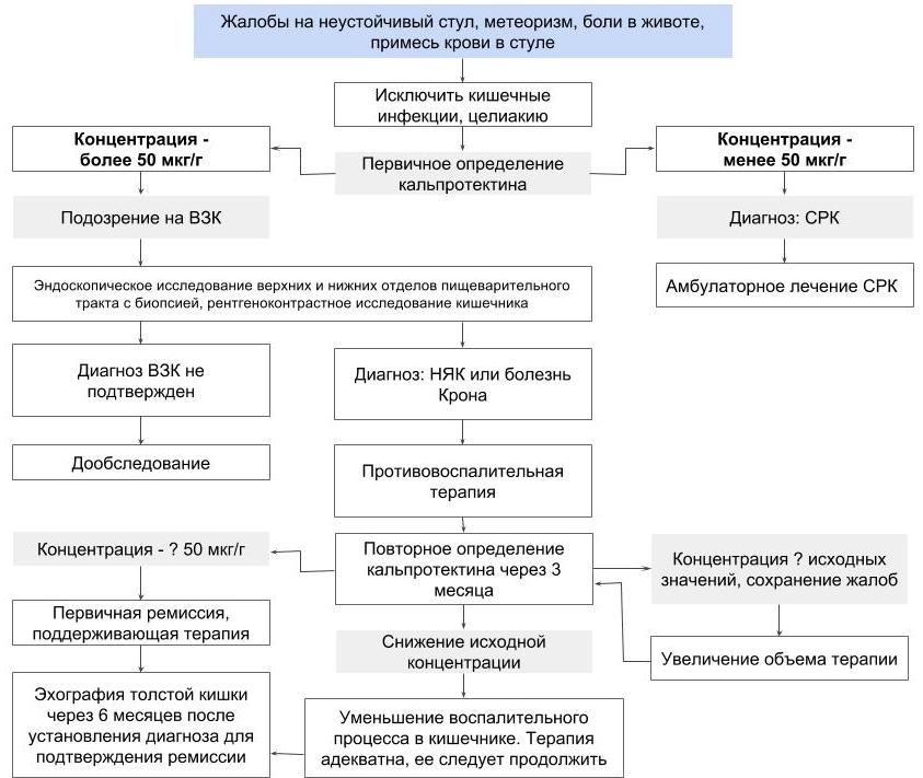 Если симптоматика является смытой и в кале не находят превышенного содержания кальпротектина, то в подавляющем большинстве случаев врачи ставят диагноз «синдром раздраженного кишечника».