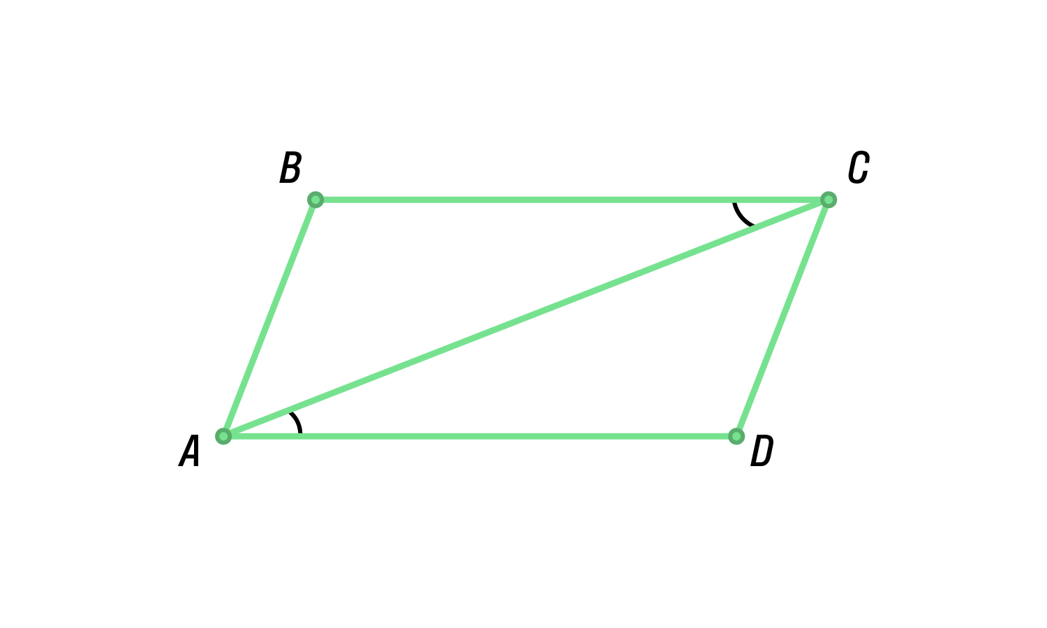 ÐиÑÑекÑÑиÑÑ Ñглов, пÑинадлежаÑÐ¸Ñ Ð¾Ð´Ð½Ð¾Ð¹ ÑÑоÑоне паÑаллелогÑамма, пеÑеÑекаÑÑÑÑ Ð¿Ð¾Ð´ пÑÑмÑм Ñглом.