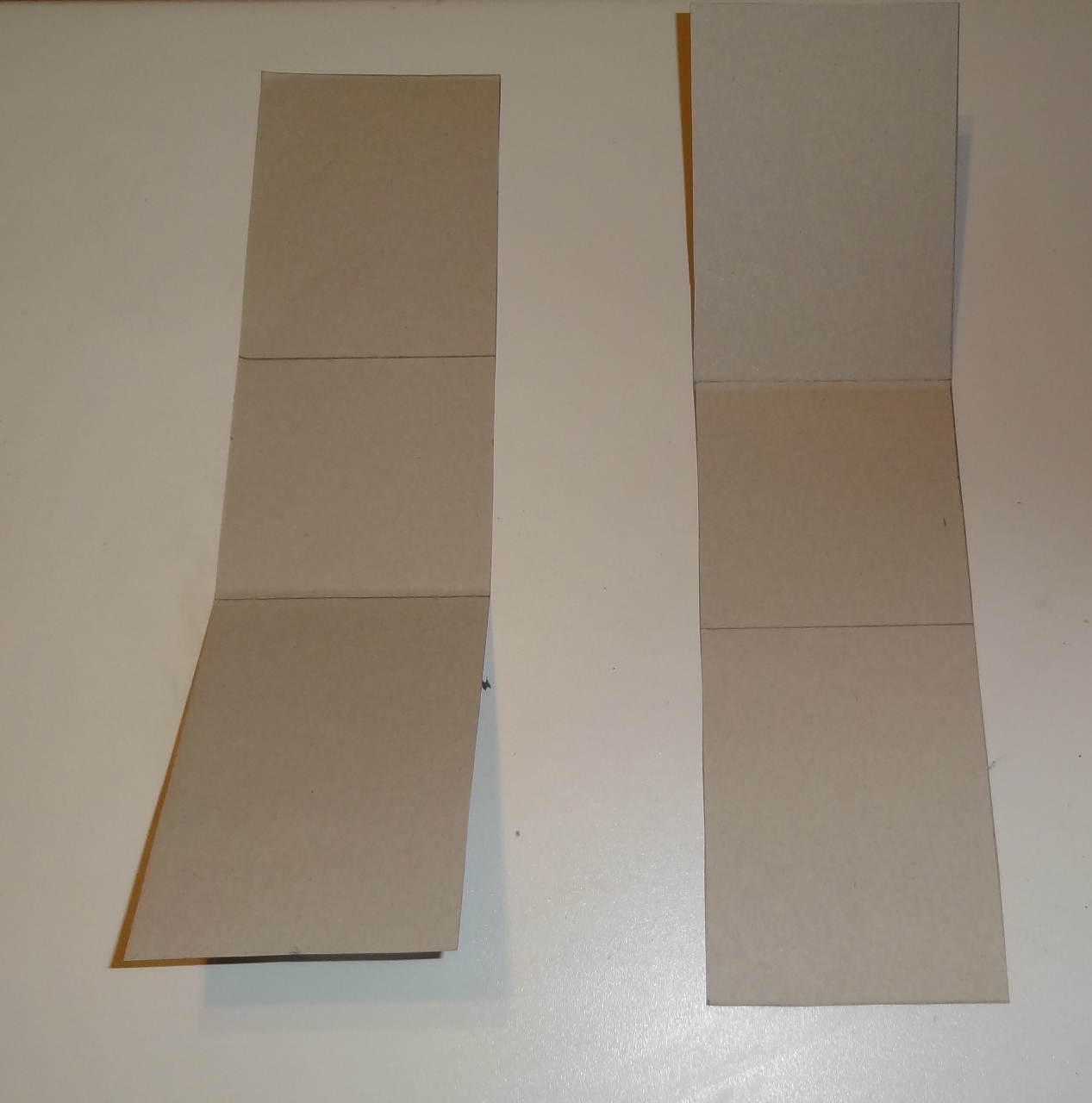 Вторая заготовка тоже делается из картона. Берем лист картона, кладем на него первую заготовку и добавив по 1 см с каждой стороны, проводим линии отреза. Но такие длинные полосы нам не нужны, поэтому оставляем на них около 3-4 см.