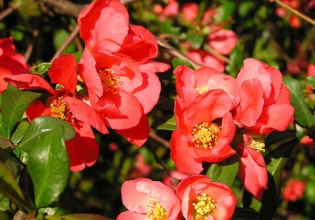 Хеномелес — декоративный кустарник, цветущий весной. По словам Анны Кристиан Берк, он обозначает искушение. Твердые плоды с вяжущим вкусом (японская айва) содержат больше витамина С, чем лимоны. Разумеется, традиционно идею искушения связывают с яблоней, поскольку считалось, что Ева дала Адаму именно яблоко. Однако в XIX веке яблоневый цвет означал предпочтение, а нарциссы — уважение. И только Генри Филлипс, известный своими зачастую эксцентричными ассоциациями, связал нарциссы с ложной надеждой.