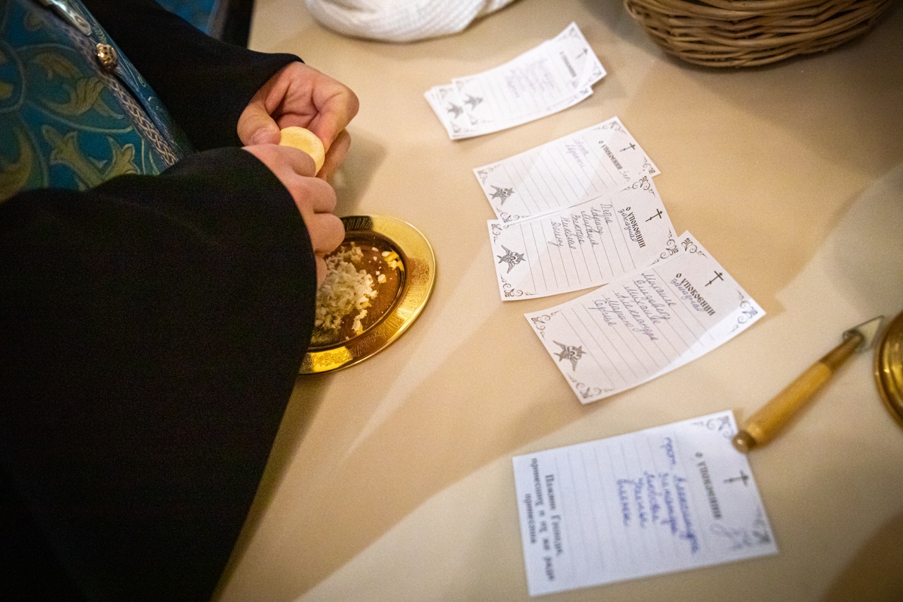 Во время проскомидии (одной из «приготовительных» частей Литургии) из просфор извлекаются частицы по числу имен, заранее просимых к поминовению