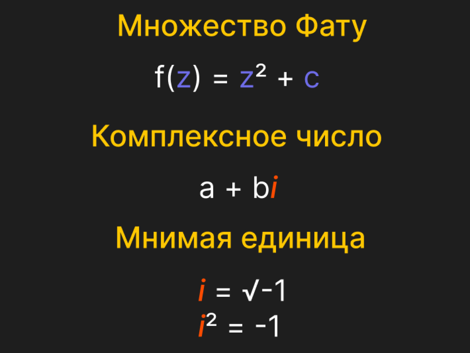 Возвращаемся к нашему Мандельброту. Небольшая шпаргалка, чтобы напомнить, о чём шла речь: