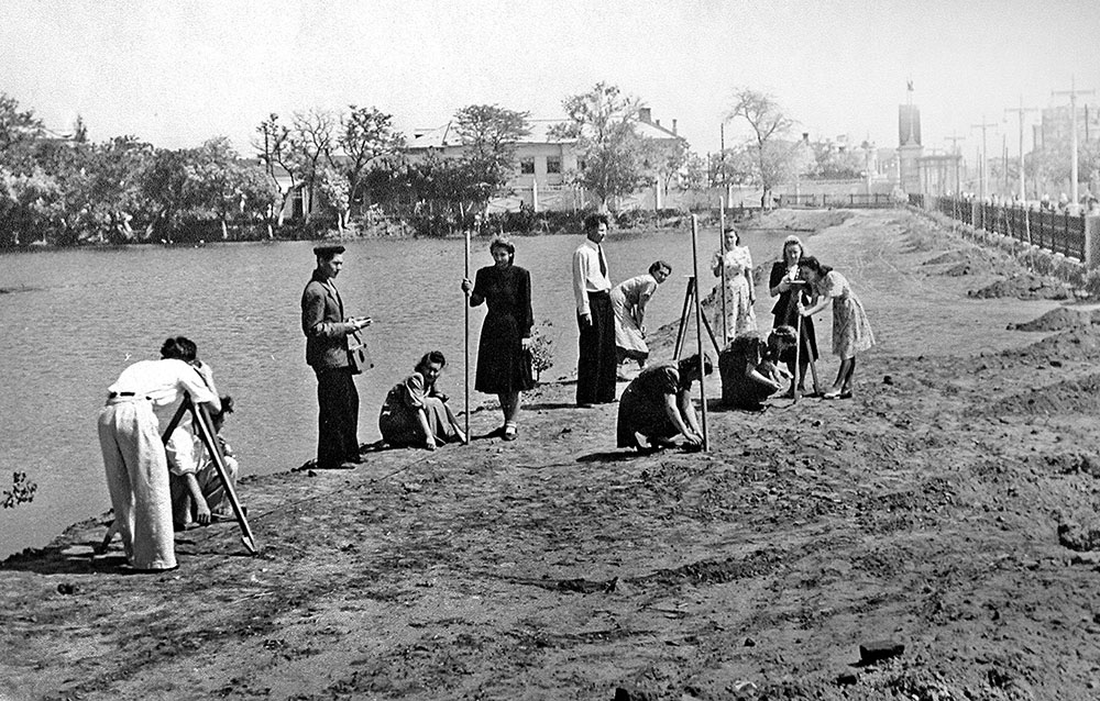 Студенты на практический занятиях по геодезии, 1950-е годы. Фото: museum.asu.edu.ru