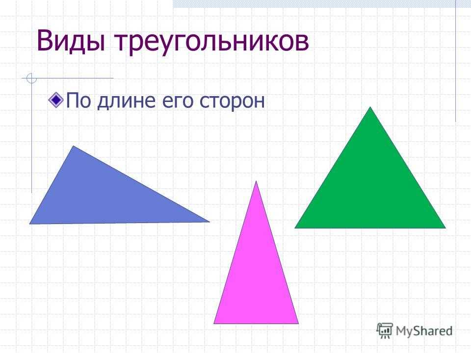 В зависимости от длин сторон и углов между ними, треугольники могут быть разных типов: