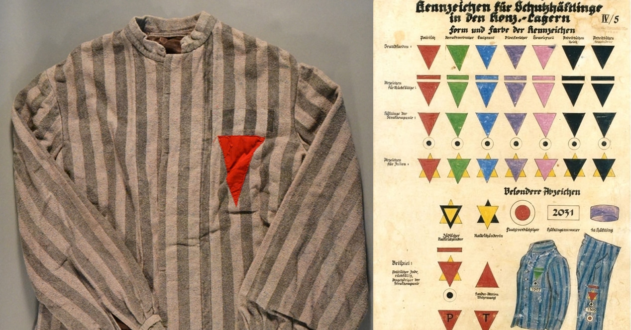 Точно так же, как евреи были отмечены нацистами желтой звездой Давида, не так хорошо известно, что политические заключенные того времени в Германии также получили особое удостоверение личности, которое было, как вы можете видеть на фотографии, которую вы только что вверху перевернутый красный треугольник. Это было обычным явлением в концентрационные лагеря где они содержали этих политических заключенных и, хотя сначала они были только членами коммунистических партий того времени, с течением времени это использовалось также со всеми другими противниками нацистской партии: анархистами, профсоюзными лидерами, масонами, либералы и даже старые товарищи, участвовавшие в подъеме движения во главе с Адольфом Гитлером.