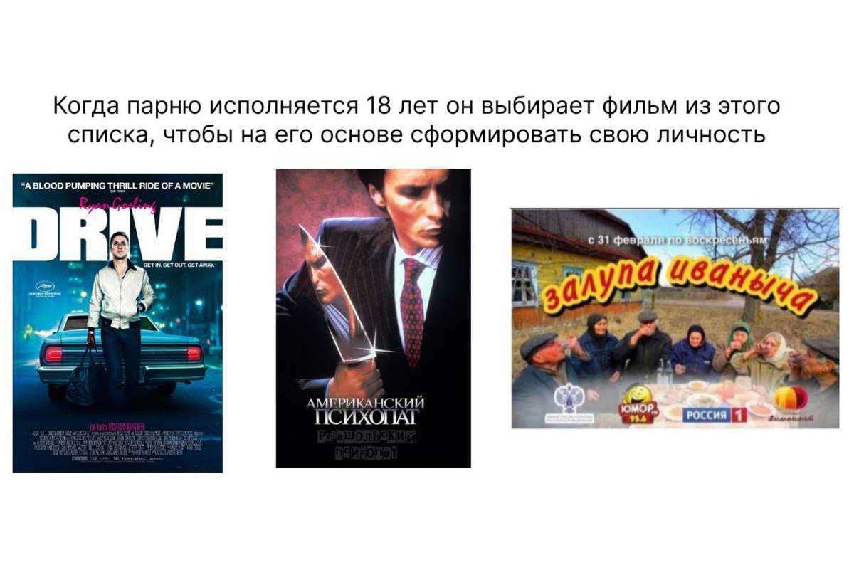 Шутка быстро прошла путь от иронии до постиронии. Сначала это был стеб над молодым поколением, которое якобы смотрит все, что выходит на стримингах. А в конце стало невозможно понять, действительно авторы мемов все еще шутят или все-таки хотят посмотреть фильм.