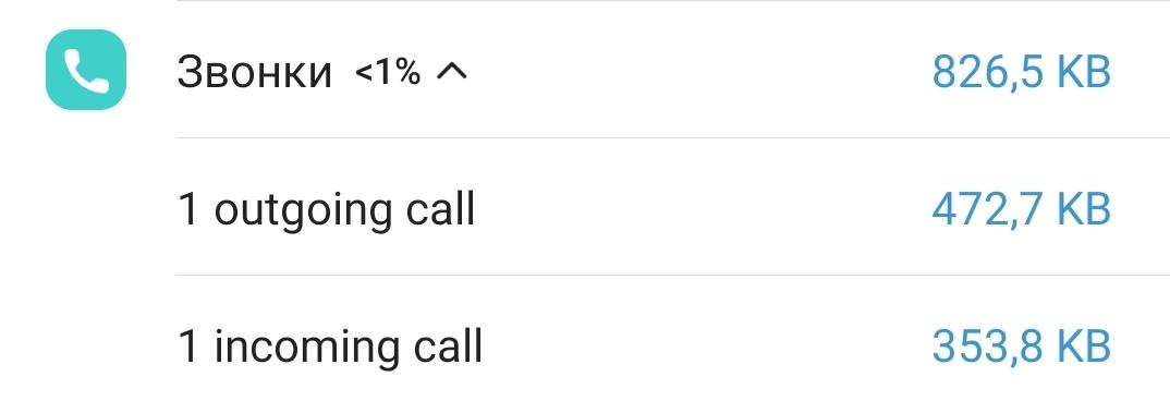 В данном примере минутный разговор занимает меньше 1 MB. Если раскрыть пункт из списка, статистика будет более подробной. Можно увидеть потребление трафика от исходящих и входящих вызовов.