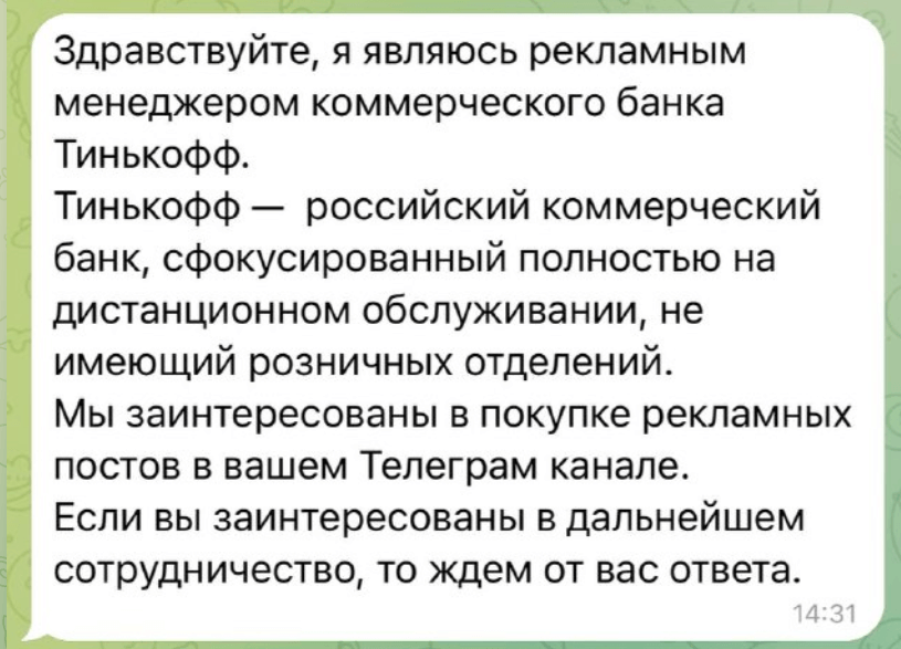 Фейковая регистрация. Мошенники предлагают купить несколько рекламных постов в вашем канале от лица известных кампаний.