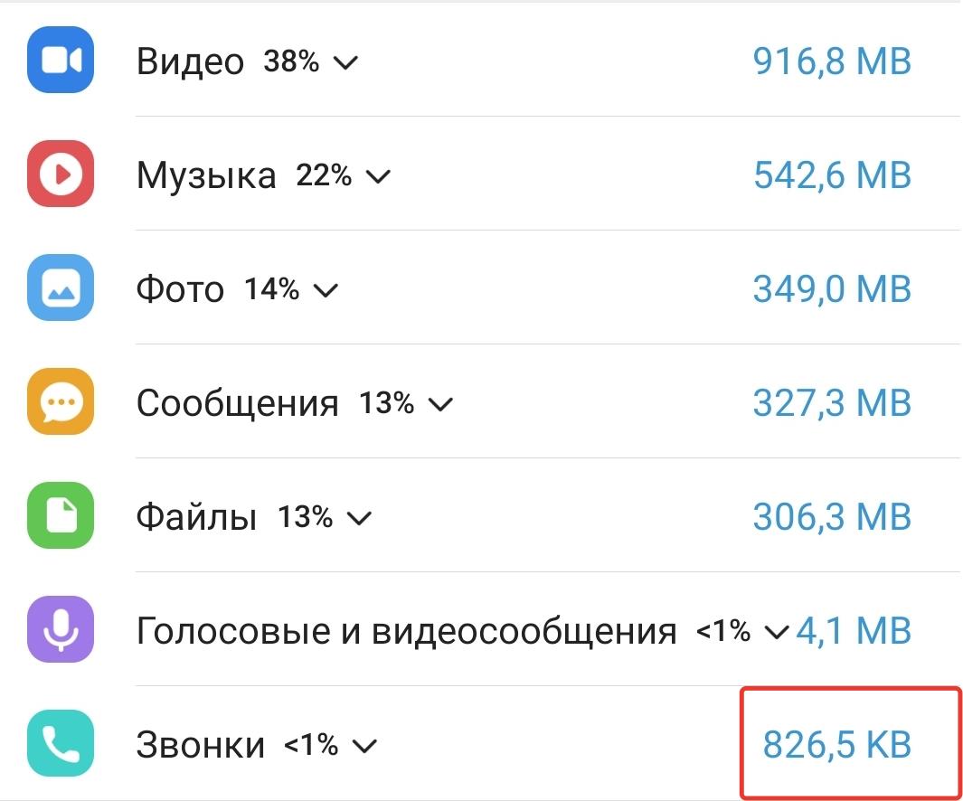 - Найдите в списке «Звонки» и посмотрите на объем потребляемого трафика.