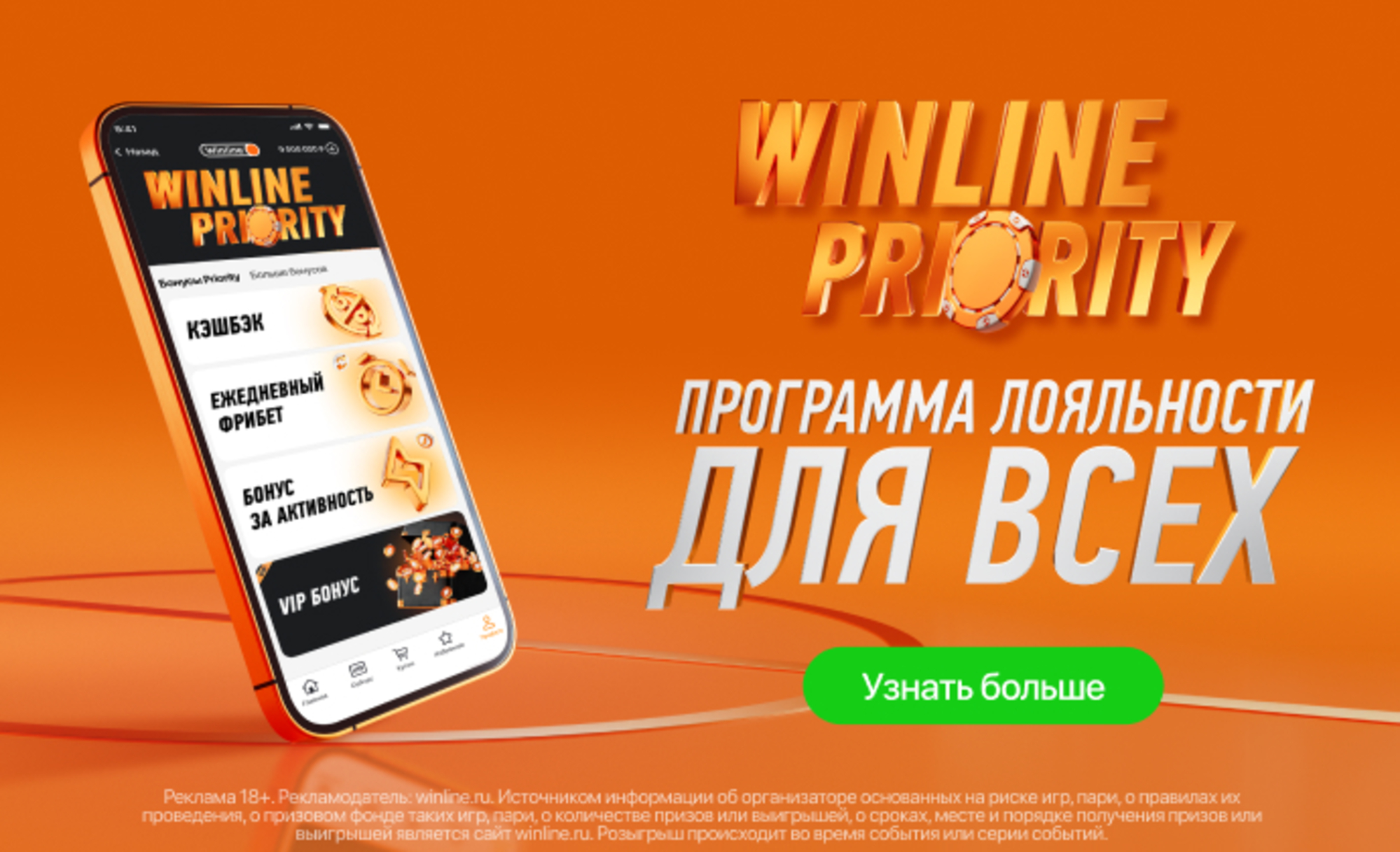 Фрибет Винлайн: до 5000 рублей ежедневно по программе лояльности