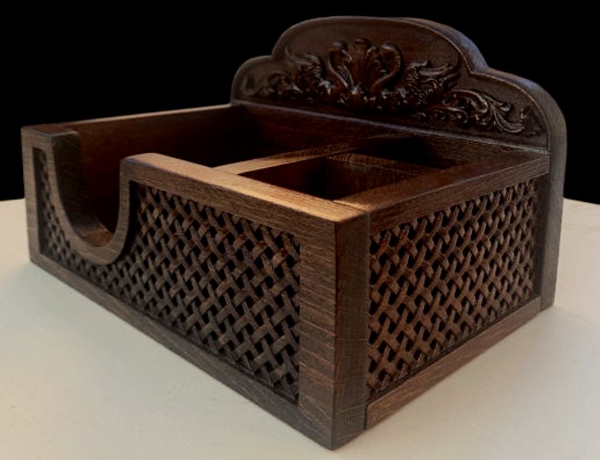 Прекрасным украшением любого обеденного стола станет салфетница из дерева. А также она отлично подойдёт в качестве подарка близким.