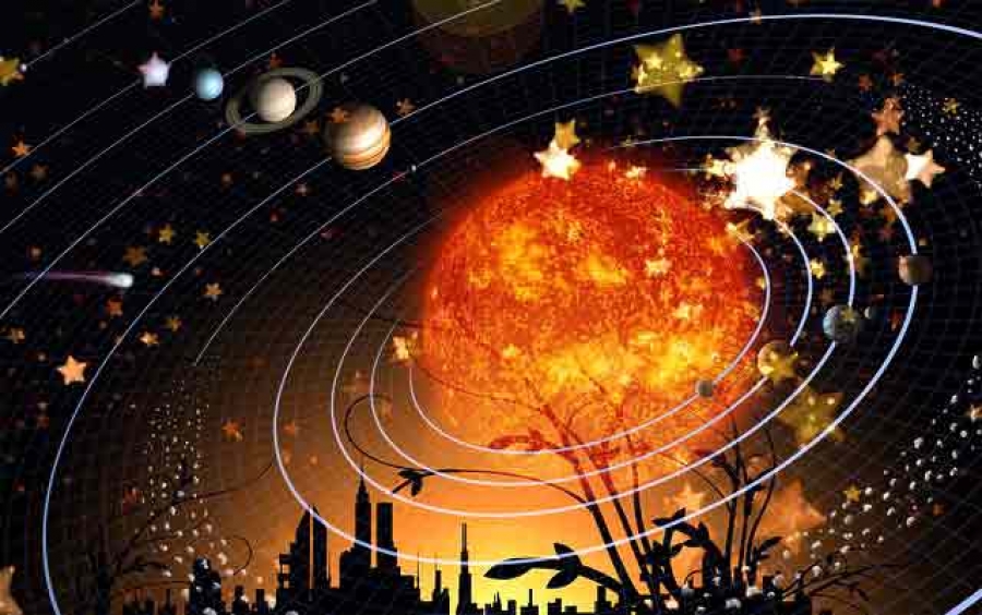 В центра Солнечной системы находится Солнце, вокруг которого по орбитам вращаются девять крупных планет. Так как Солнце смещено от центра планетарных орбит, то за цикл оборота вокруг Солнца планеты то приближаются, то отдаляются по своим орбитам.