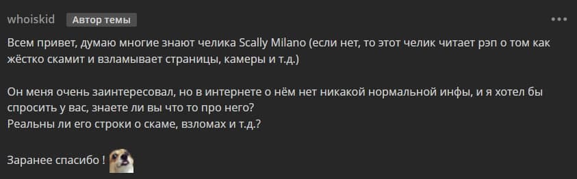 Он меня очень заинтересовал, но в интернете о нём нет никакой нормальной инфы, и я хотел бы спросить у вас, знаете ли вы что-то про него? Реальны ли его строки о скаме, взломах и т. д.?