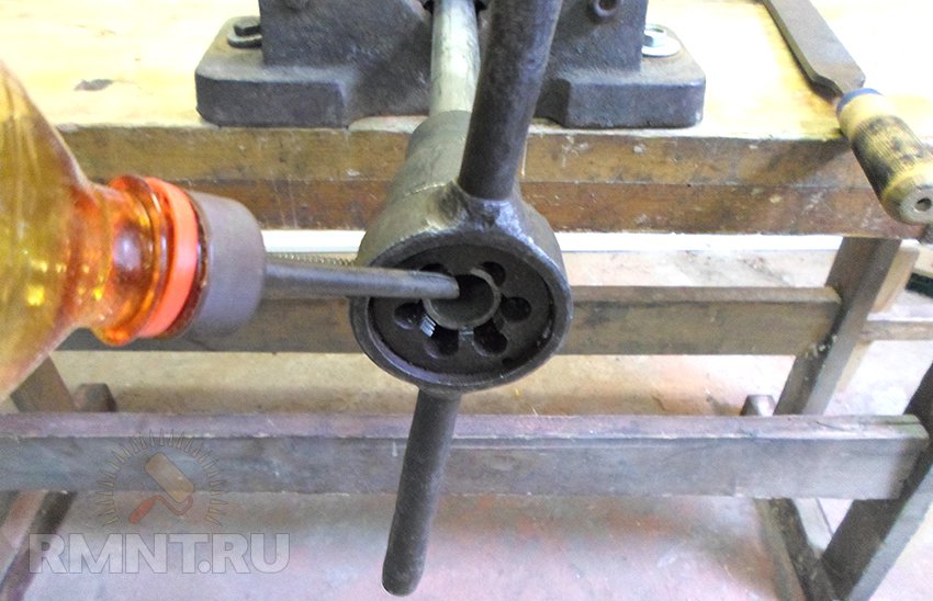 4. Далее скручиваем плашкодержатель и очищаем резьбовую поверхность от опилок, всё — работа закончена в течение получаса.