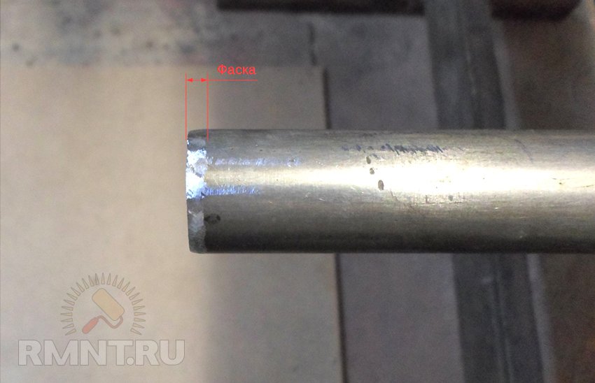 1. Обрабатываемый конец трубы зажимается в тисках, болгаркой подравнивается срез — он должен быть ровный. Напильником выполняется заход (снимается фаска).