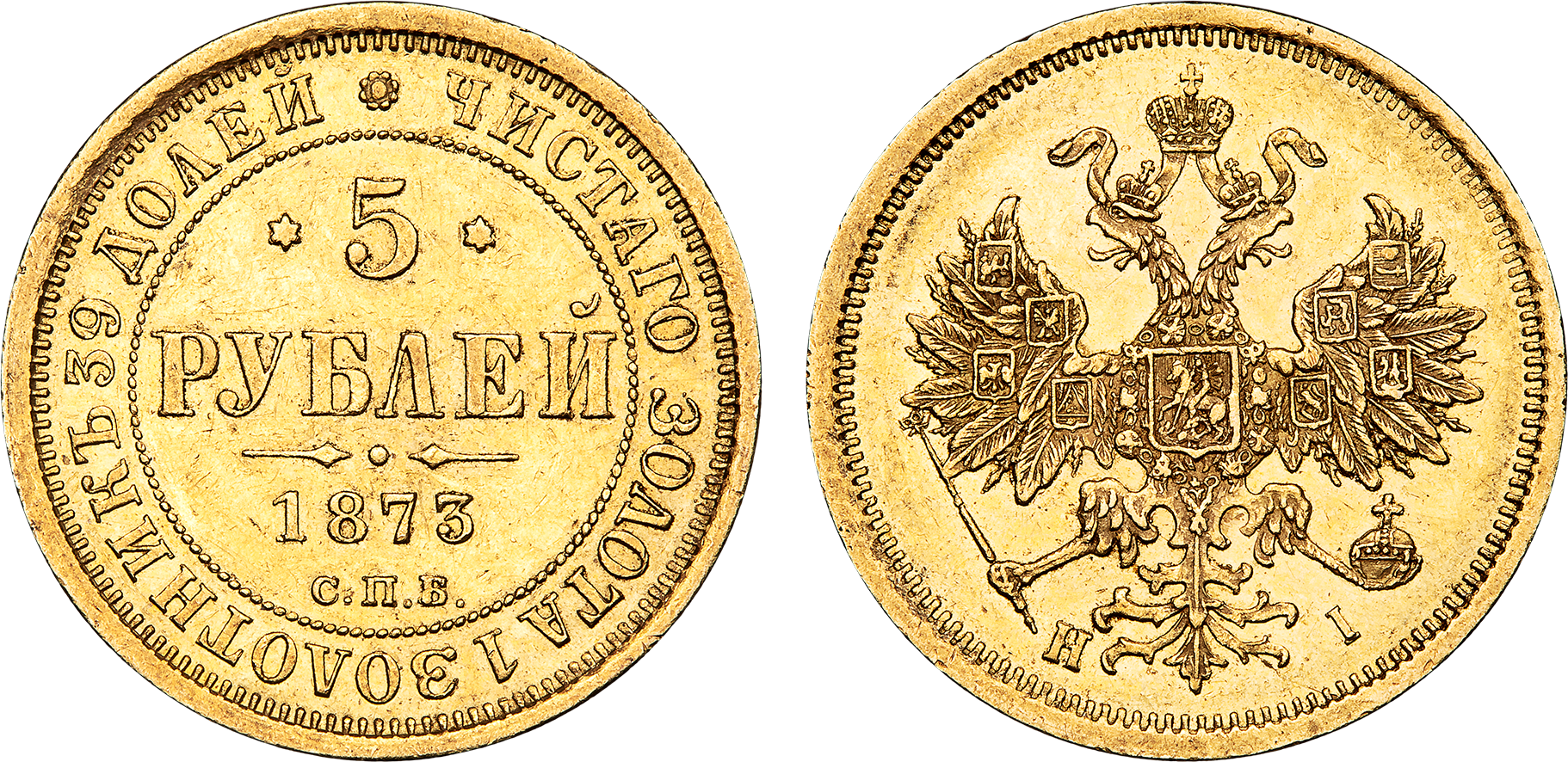Монета полуимпериал царствования Александра II. Золото, 1873 год