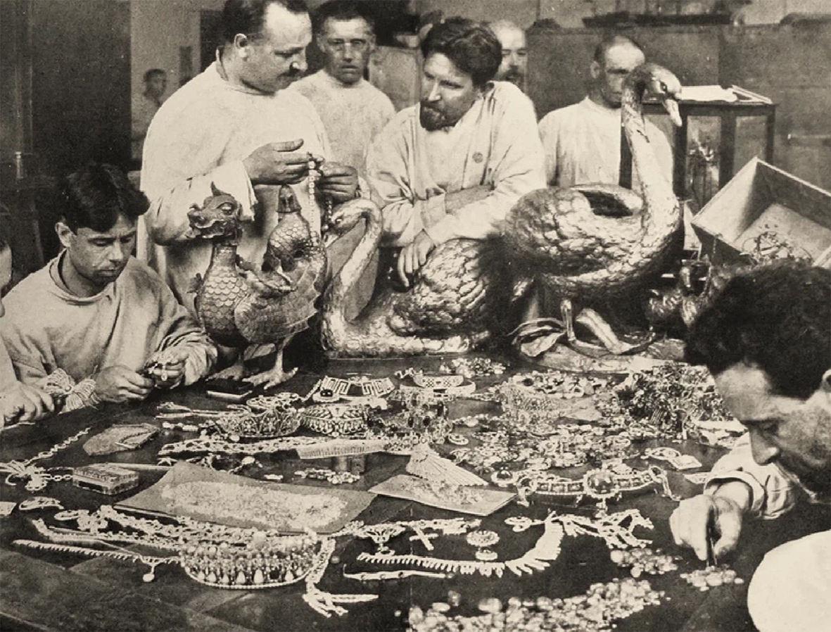 Инспекция украшений, найденных в тайнике в московском особняке Юсуповых. Журнал «Огонек» от 29 июня 1925 года